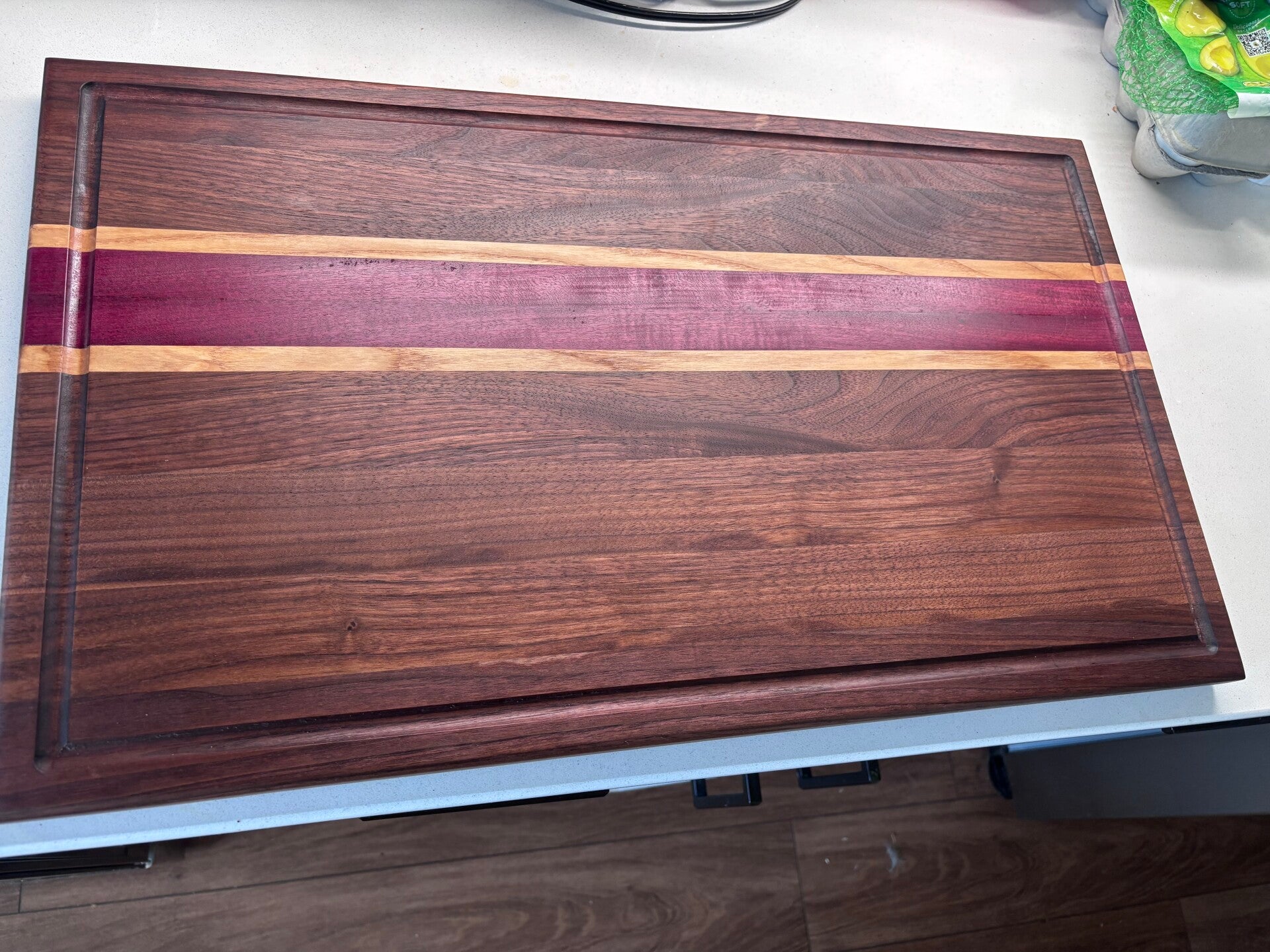 What makes our Artisan Slice Cutting Boards truly special? Each one is custom made, ensuring a personal touch that resonates. For individuals, this means a unique addition to your home. For businesses, it's a great way to feature your logo, creating memorable corporate gifts that stand out. Locally created by partnering business Nicely Wood Working from Lucama, NC. Scott Nicely makes these boards are made to order selecting from Walnut and Ash and other hardwoods such as Oak, Purple Heart, Padauk, Zebra and Wenge.